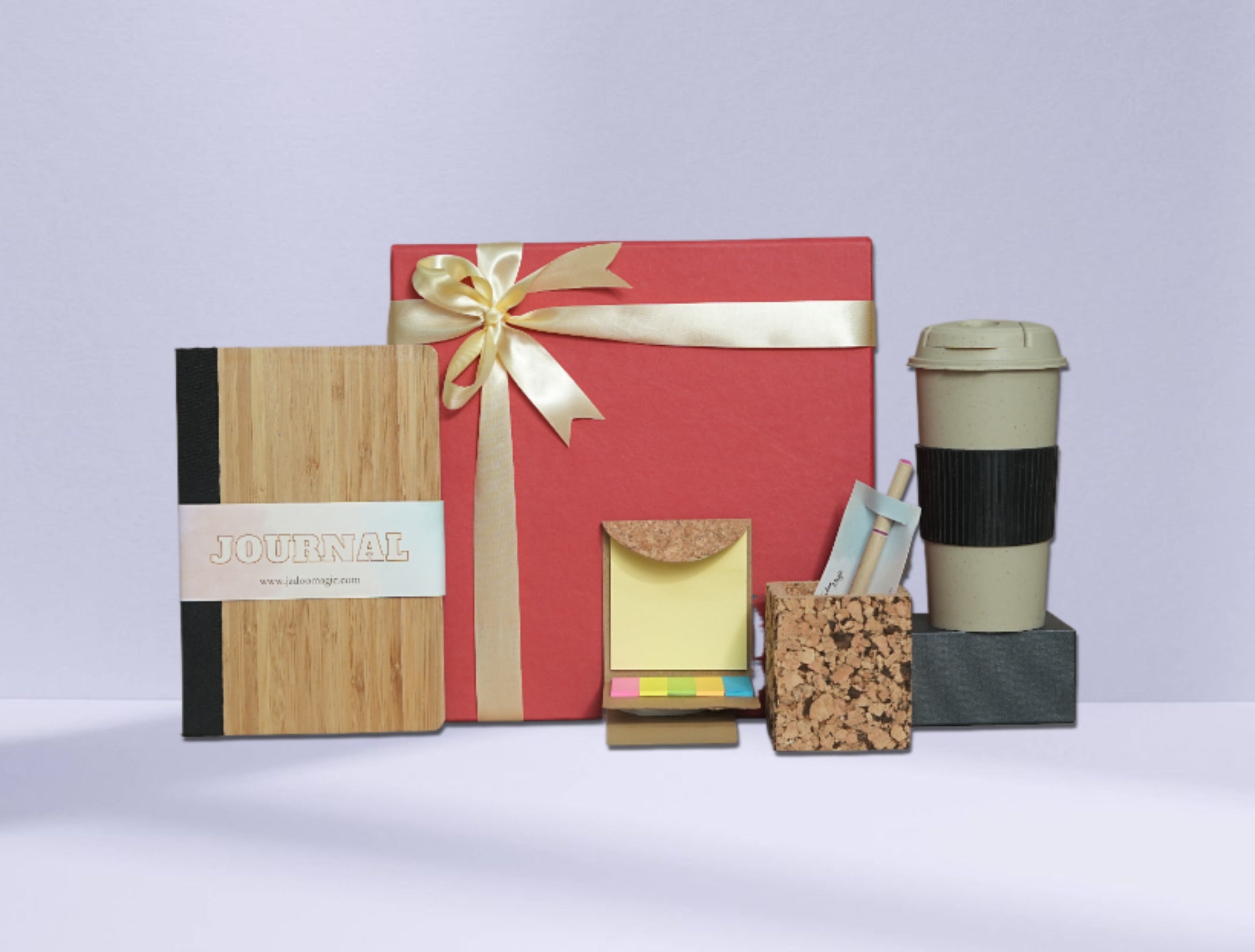 Introducing our Eco Conscious Gift Box, the perfect choice for the environmentally conscious individual in your life. This gift set includes a stylish bamboo coffee mug for enjoying fresh beverages, a bamboo notebook and pen, as well as a seed pencil for sustainable writing. Additionally, the set features desktop essentials such as cork sticky notes and a cork pen stand, making it the ideal choice for both office and home use. Whether you're looking for the perfect employee gift, a corporate gift, or a thoughtful New Year's present, our Eco Conscious Gift Box has you covered. Give the gift of sustainability and style with this environmentally friendly and practical gift set.