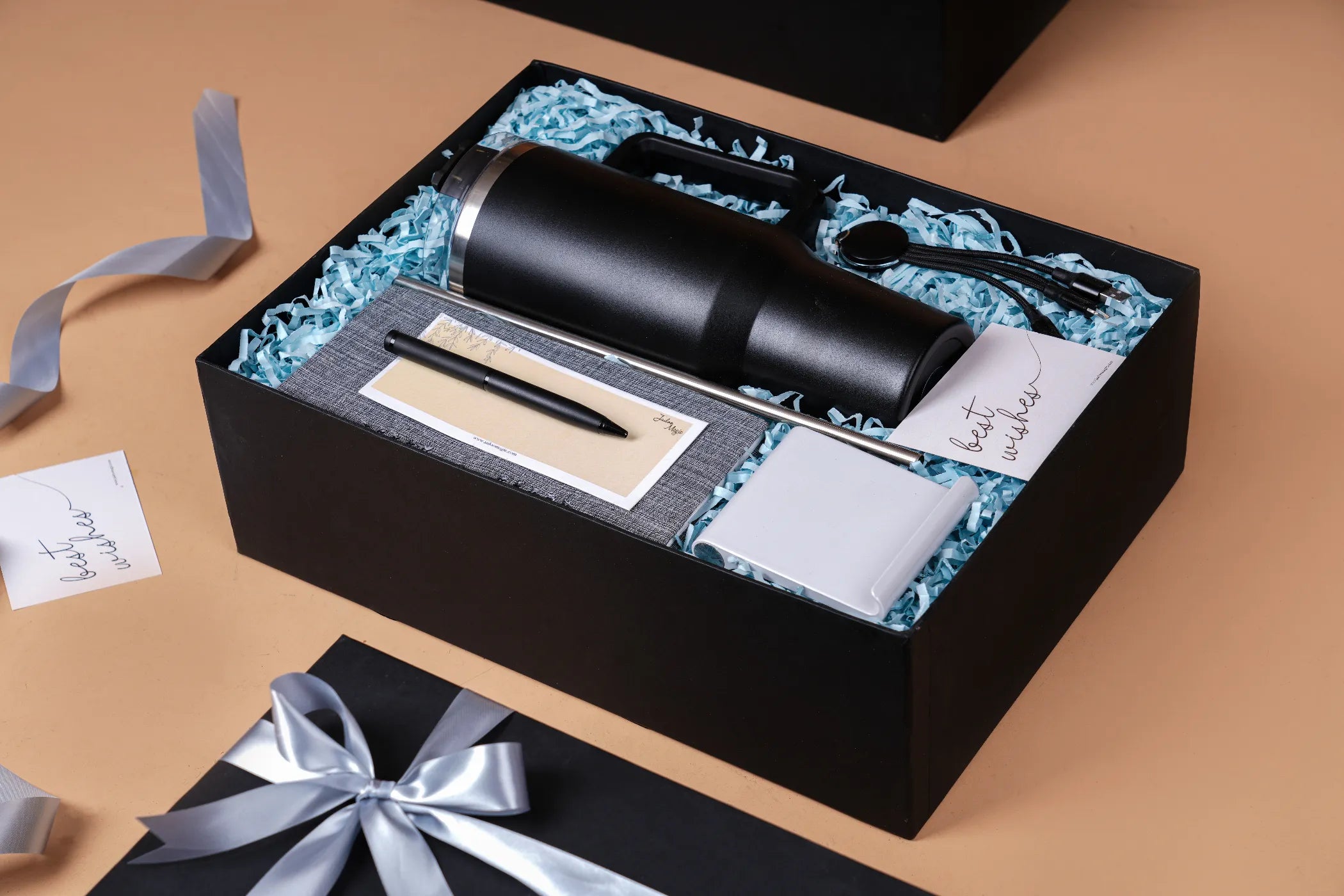 Packaged in our 11x15x5" Top Bottom Kappa Box .They are beautiful, sturdy, and reusable and coordinated with a satin ribbon. Each curated box ships as a gift, with a greeting card and without any pricing information. We hope your Jadoo box is enjoyed for years to come.