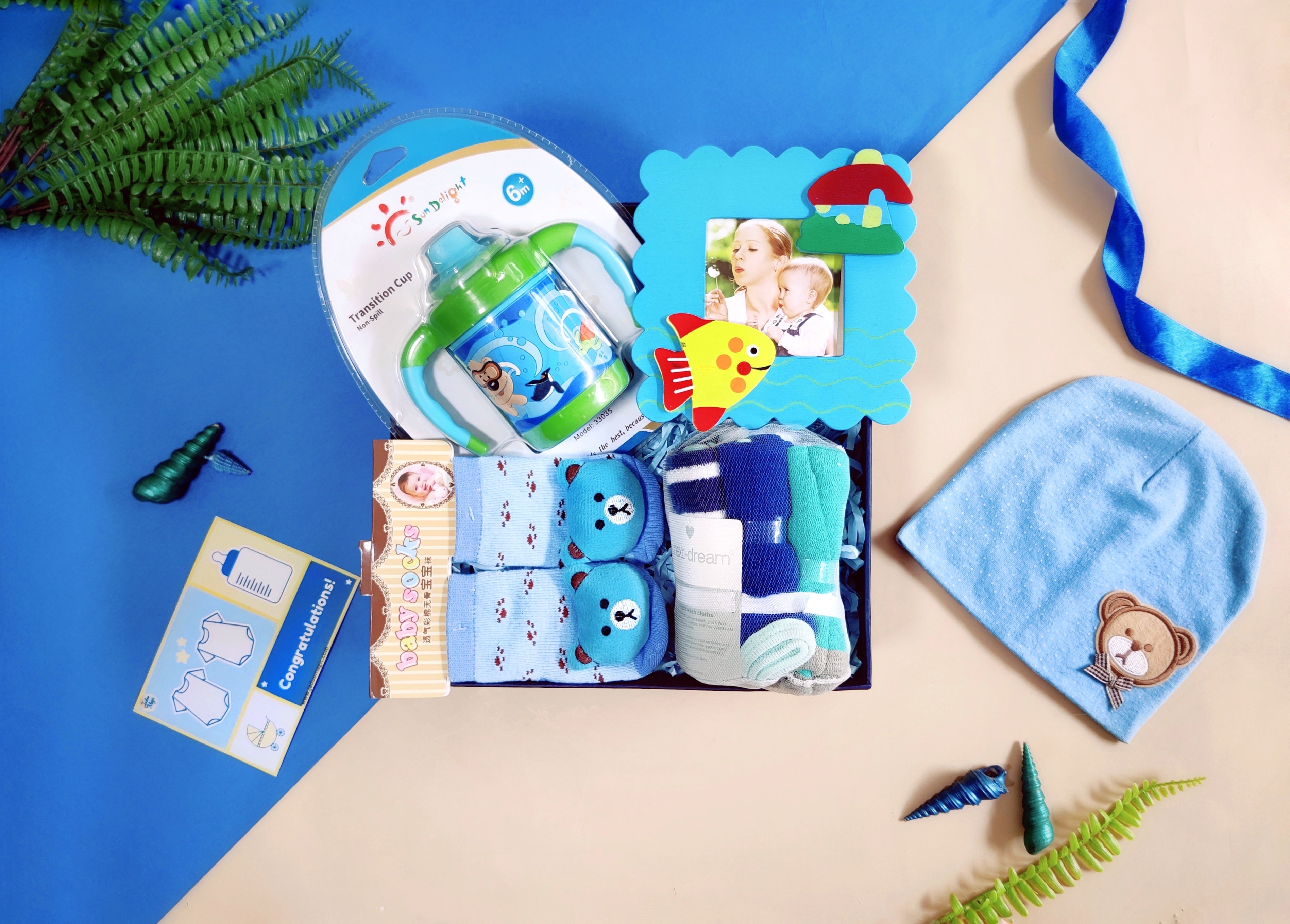 Discover the enchanting Aqua Boy gift box from Jadoo Magic, meticulously curated to bring joy and convenience to new parents. This magic-filled box includes a Non Spill Transition Cup/Sipper, ensuring mess-free hydration, a Baby Socks Set with Anti Skid to keep your little one safe, and a Set of 8 Wash Cloths for all the gentle cleanups. It also features a soft Cotton Cap for delicate head protection and a charming Wooden Photoframe for Kids to capture those precious moments. Give the gift of thoughtful essentials wrapped in a sprinkle of magic with Aqua Boy.