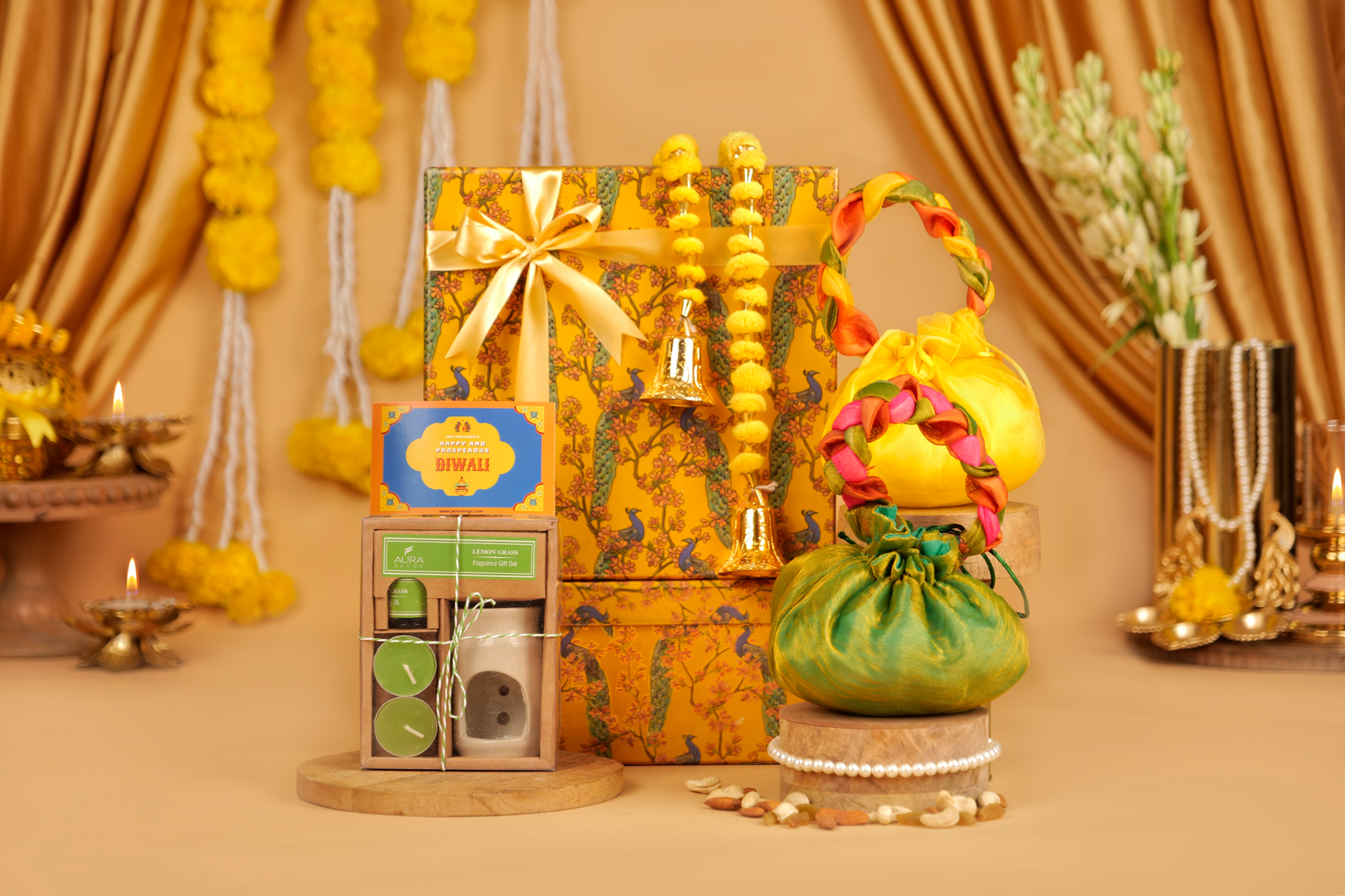 Introducing the Vandan Gift Box from Jadoo Magic, an impeccable blend of elegance and tradition. This meticulously curated box includes an Aroma Oil Burner Gift Set, perfect for creating a tranquil ambiance. It also features a Decorative Toran set of 2, adding a festive touch to any home. Complementing these items are Exquisite Potlis filled with 100 gm of Roasted Cashews and 100 gm of Roasted Almonds, making it a delightful gift for any occasion. Choose Vandan to experience the magic of thoughtful gifting and exceptional craftsmanship.