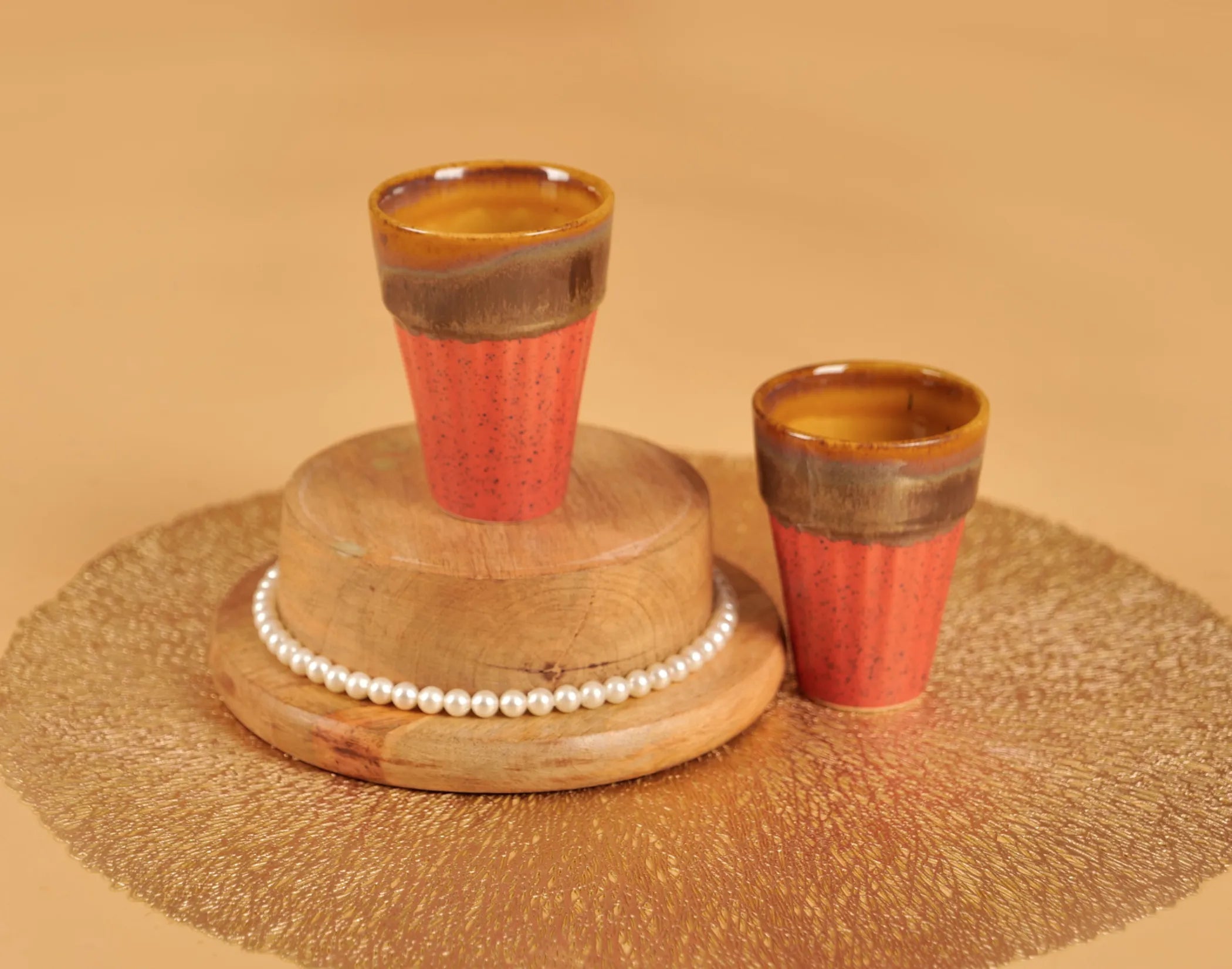 Tea Glass Dual Colored ( Rust ) in Glazed Ceramic