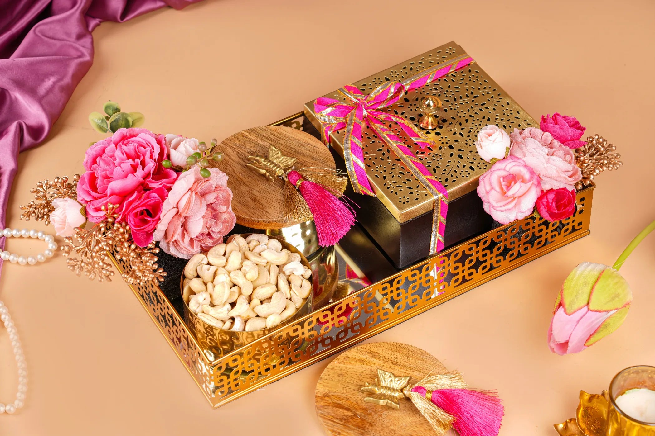 Packaged in our designer tray and jars, this will be shipped as a gift with a greeting card and without any pricing information. We hope your Jadoo box is enjoyed for years to come.